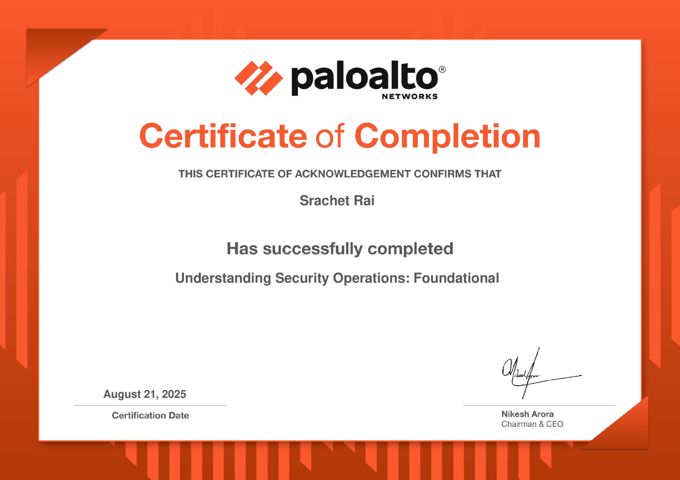 Successfully completed the Cato Certified Associate (CCA) course, demonstrating foundational knowledge in secure network architecture, cloud security, and the Cato SASE platform.